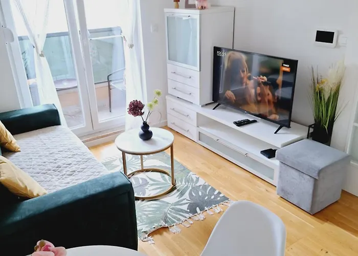 Het appartement beschikt over een keuken, uitgerust met een broodrooster en een oven. Met Amerikaanse maaltijden is Ajduk pizza&bar op loopafstand van ongeveer 6 minuten ervandaan. Het is gesitueerd op circa 300 meter afstand Rondo bushalte.
